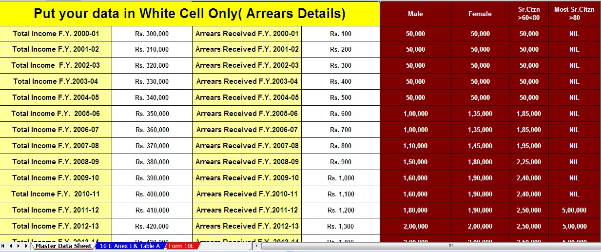 Download Automated Income Tax Arrears ReliefCalculator U/s 89(1) with Form 10E from the F.Y. 2000-01 to F.Y. 2019-2020