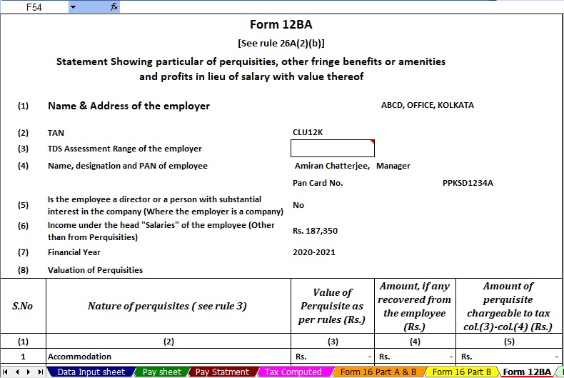 Download Automated Income Tax Preparation Excel Based Software for the Private Employees for the F.Y.2020-21 & A.Y.2021-22 As per the New and Old Tax Regime U/s 115BAC in Budget 2020 (This Excel Utility can prepare at a time your Tax Computed Sheet + Individual Salary Structure as per Private Concerns Salary Patterns + Automated Income Tax Form 12 BA + Automated Income Tax Revised Form 16 Part A&B and Form 16 Part B ]