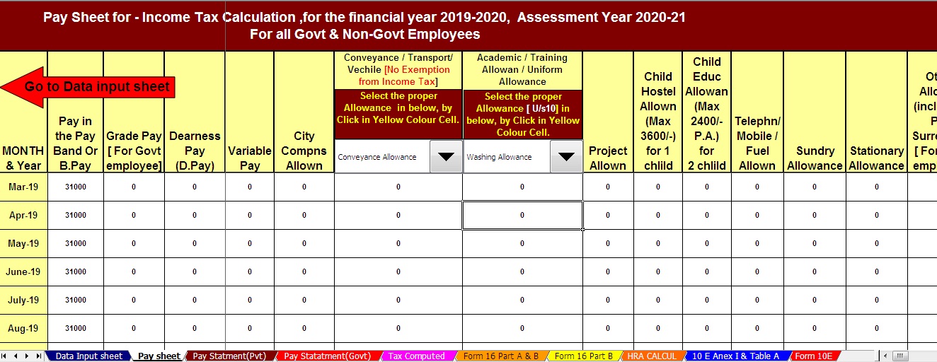 4) Automated Income Tax Salary Sheet for each Employee