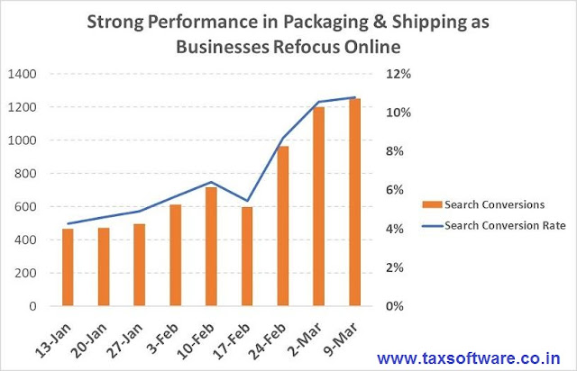 operating online, packing and shipping supplies more than doubled their search